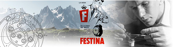 История марки Festina начинается в 1902 году в городе Ла-Шо-де-Фон, расположенном на западе Швейцарии. Свое название марка получает от латинской пословицы Festina Lente, что в переводе означает «Спеши медленно». В эпоху ар-нуво аллегории были популярны. Примечательно, что эта латинская пословица состоит из 12 букв, а потому они часто появлялись на циферблате вместо стандартной цифровой разметки. Высокое качество, интересный дизайн и оригинальное название сделали свое дело. В короткие сроки часы Festina становятся весьма популярными сначала в Швейцарии, а потом и во всей Европе.