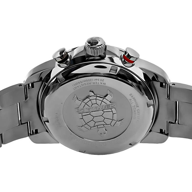 Корпус: Титановый. Синий циферблат. Стрелки и часовые индексы серебристого цвета, покрыты люминесцентным составом. Антибликовое покрытие сапфирового стекла позволяет циферблату быть хорошо читаемым и видимым даже в самые солнечные дни. Диаметр 44 мм. Водозащита 200 м.