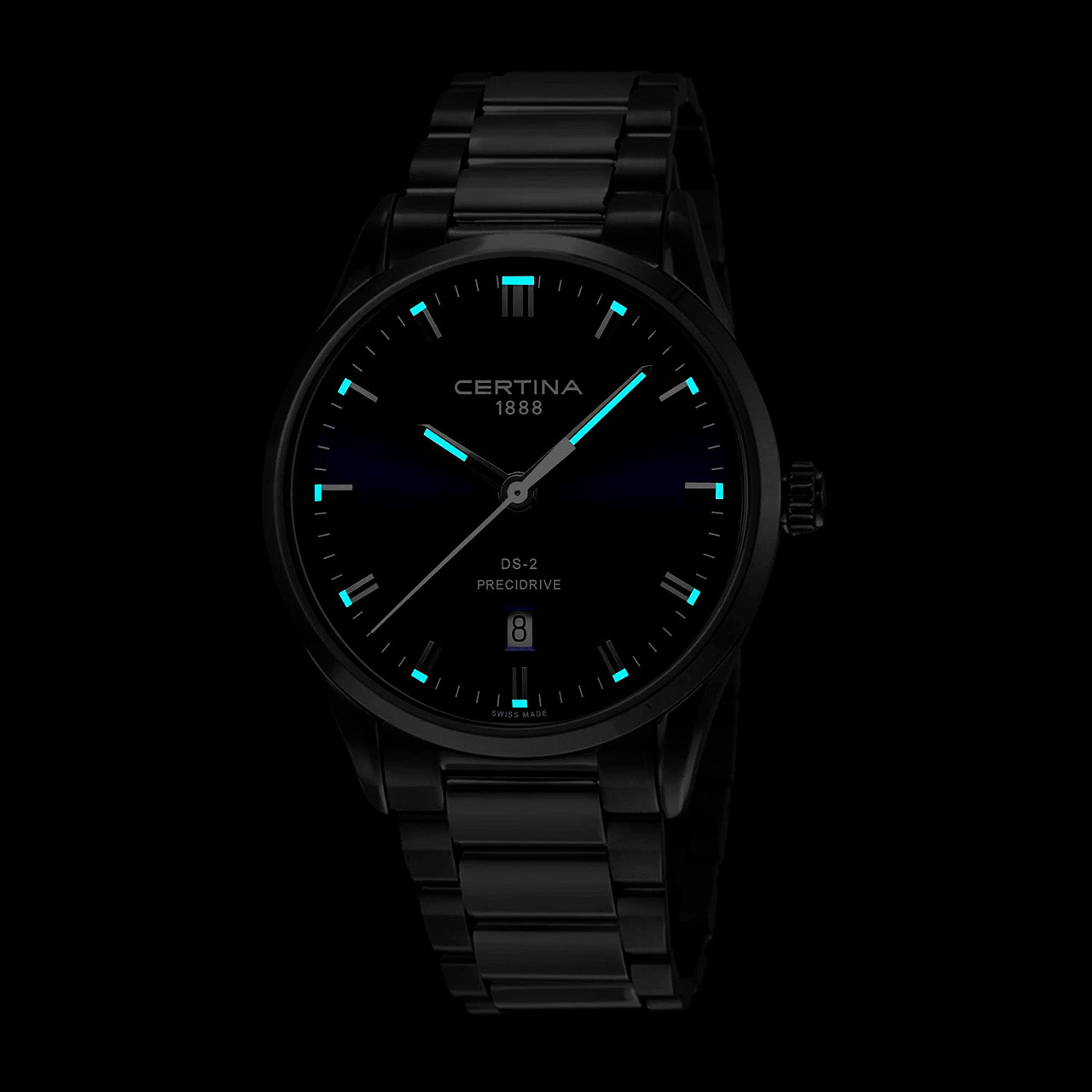 Корпус: Корпус из полированной/матовой нержавеющей стали. Циферблат с матовой шлифовкой в стиле «солнечные лучи», аппликация часовых индексов. Стрелки и индексы с покрытием Super-LumiNova. Сапфировое стекло. Диаметр 40 мм. Водостойкость 100 м. Система DS.