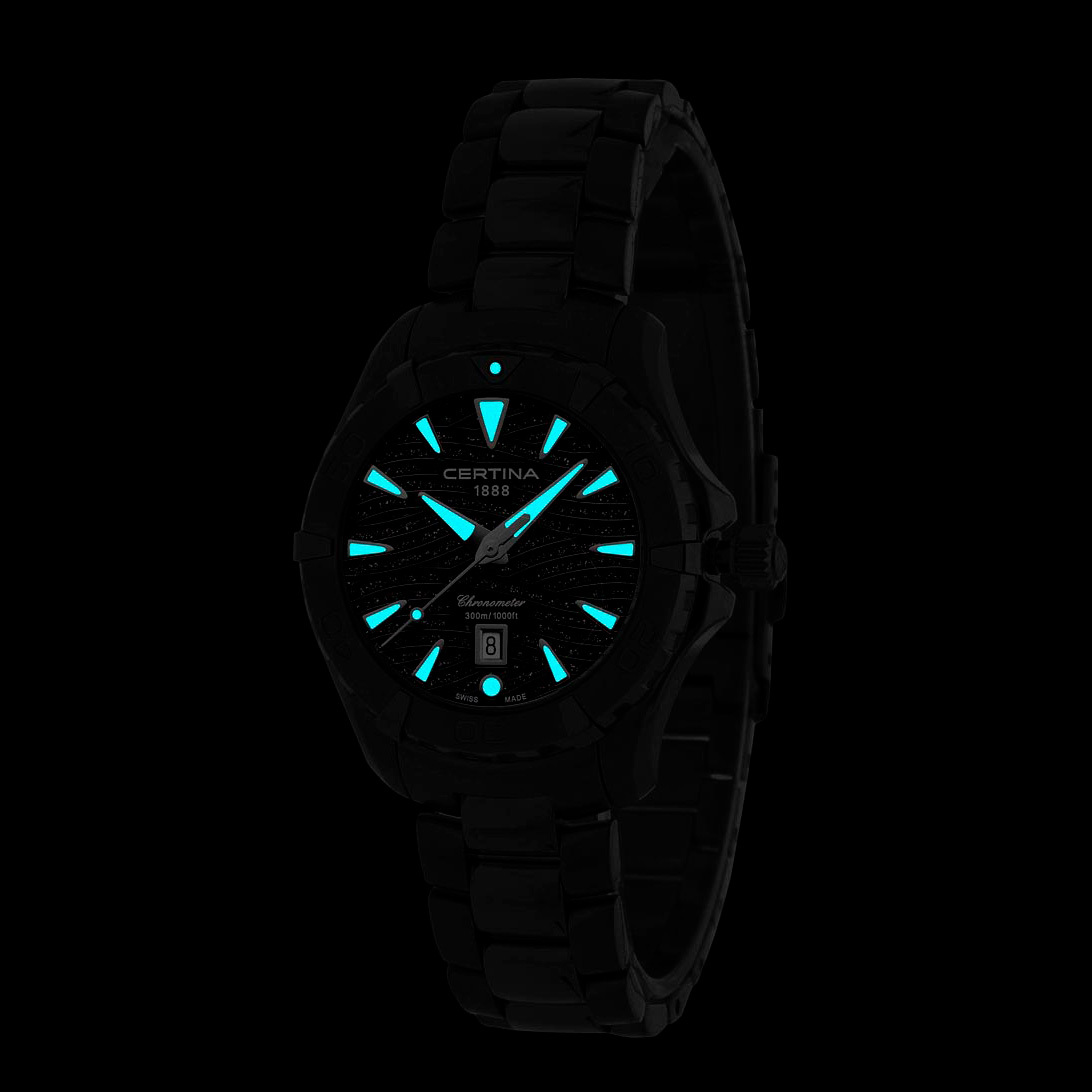 Корпус: Корпус из нержавеющей стали. Сапфировое стекло с антибликовым покрытием. Светлый серебристый циферблат, позолоченные стрелки и часовые индексы. Вращающийся безель. Диаметр 34,3 мм. Водонепроницаемость 300 метров.