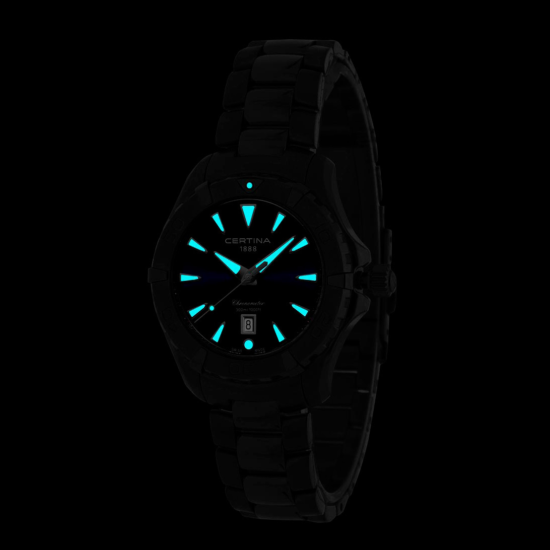Корпус: Нержавеющая сталь. Синий циферблат. Стрелки и часовые индексы серебристого цвета, покрыты люминесцентным составом. Сапфировое стекло. Диаметр 34 мм. Водозащита 300 м.