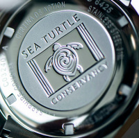Корпус: Корпус из полированной/матовой нержавеющей стали. Люминесцентное покрытие на стрелках и разметке, однонаправленно вращающийся безель из анодированного алюминия, завинчивающаяся задняя крышка с логотипом Sea Turtle Conservancy, в виде черепахи.Сапфировое стекло антибликовое покрытие стекла, черный циферблат. Диаметр 43 мм. Водостойкость 300 м. Система DS.