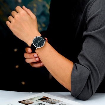 Ремешок: Черный ремень из кожи.