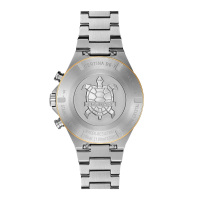Корпус: Корпус часов выполнен из высококачественной нержавеющей стали 316L с частичным PVD-покрытием. Поверхности с матовой шлифовкой – сатинированием и полировкой до зеркального блеска. Светлый циферблат выполнен по технологии Sunray (солнечные лучи). Золотистые часовые индексы и стрелки с покрытием Super-LumiNova®, которое обеспечивает длительную подсветку в темное время суток. Сапфировое стекло с антибликовым покрытием. Диаметр 41 мм. Водостойкость 100 м.