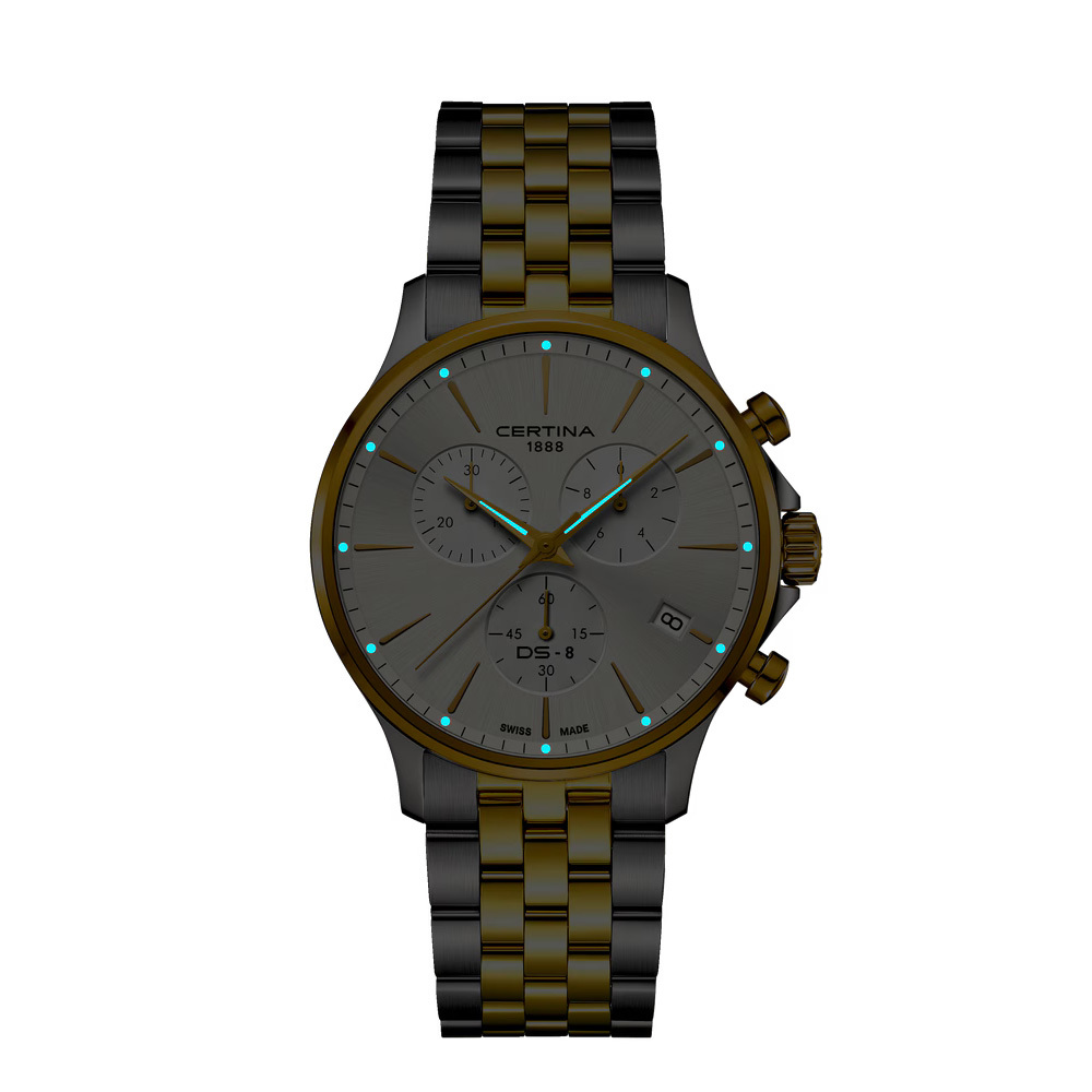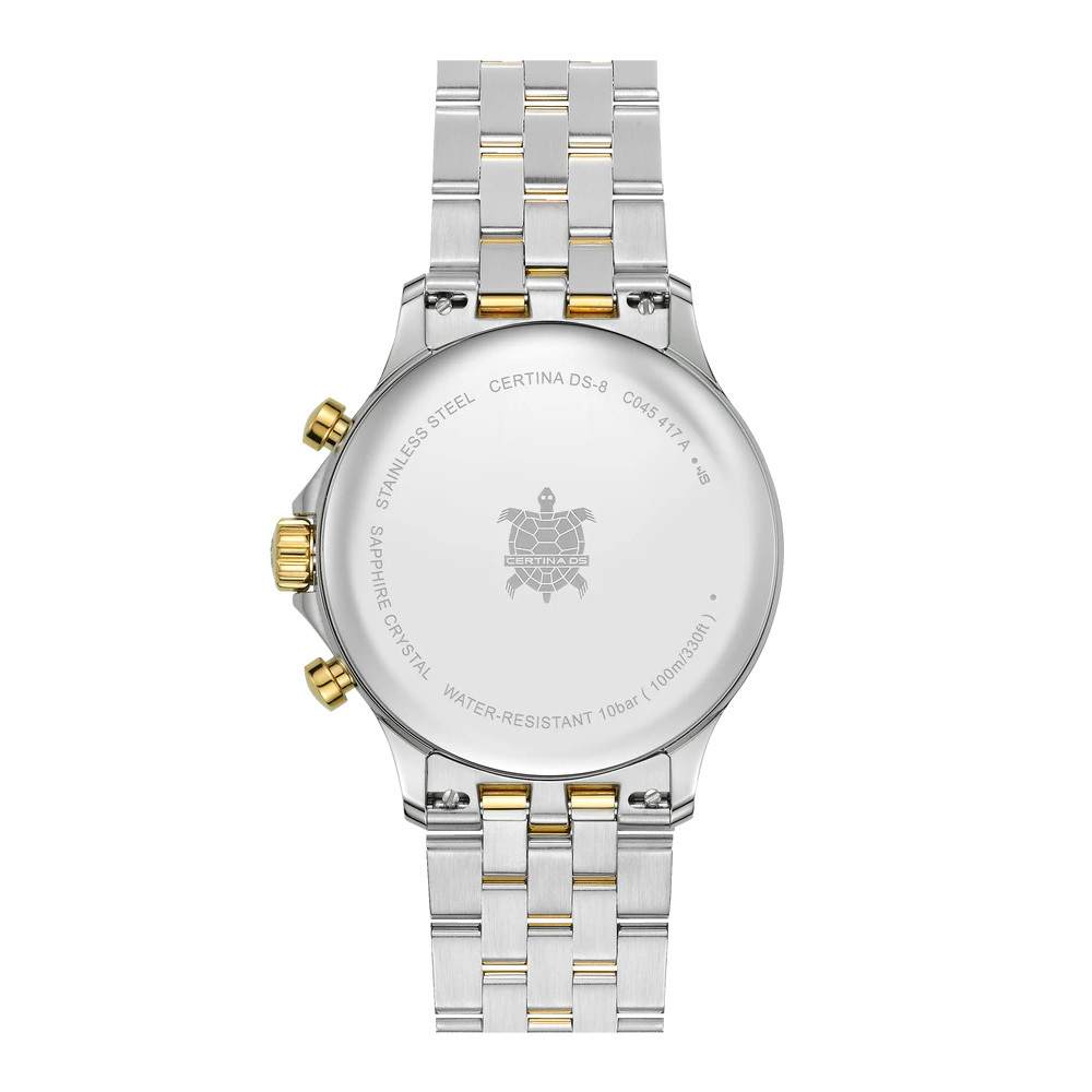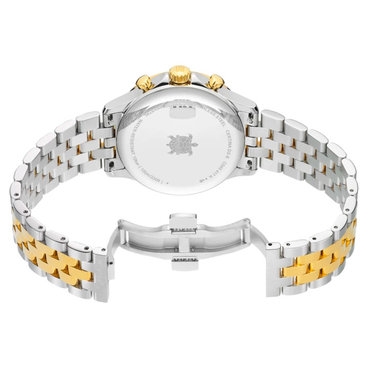 Корпус: Для корпуса часов марка Certina использует нержавеющую сталь 316L, отличающуюся повышенной износостойкостью, устойчивостью к коррозии и гигиеничностью. В стали содержится совсем небольшое количество никеля, поэтому этот материал не вызывает аллергии при носке. Серебристый циферблат выполнен по технологии Sunray (солнечные лучи). Мечевидные стрелки в стиле Sword. Рифленая заводная головка. Сапфировое стекло с односторонним антибликовым покрытием устойчивое к возникновению царапин. Заводная головка с защитой. Диаметр корпуса составляет 41 мм, толщина 11,55 мм. Водостойкость WR 100.