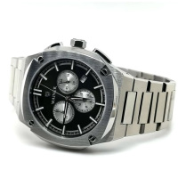 Функции: Центральные часовая и минутная стрелки, маленький секундный индикатор на «3 часах». Апертура даты находится в положении 3 часа. Хронограф с центральной секундной стрелкой.