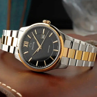 Корпус: Корпус выполнен из высококачественной стали с повышенной устойчивостью к коррозии, поверхности с матовой шлифовкой – сатинированием и полировкой до зеркального блеска с частичным PVD-покрытием. Чёрный циферблат с рельефом. Часовые индексы и стрелки с алмазной огранкой, позолотой и полировкой до зеркального блеска. Сапфировое стекло устойчиво к появлению царапин, обладает высокой прозрачностью. Диаметр корпуса составляет: 40 мм. Водонепроницаемость до 5 АТМ.