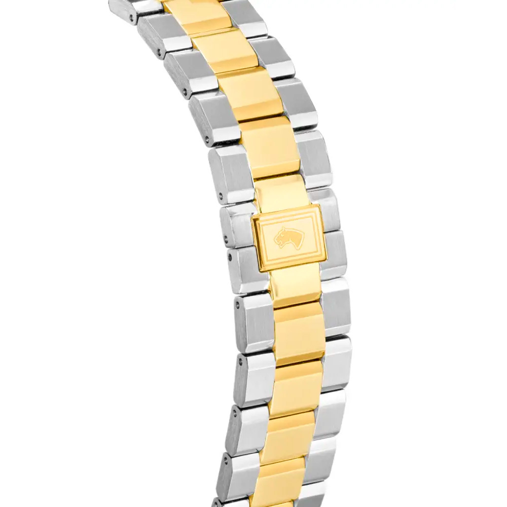 Ремешок: Нержавеющая сталь, поверхности с матовой шлифовкой - сатинированием и полировкой до зеркального блеска. Частичное PVD-покрытие цвета желтого золота.