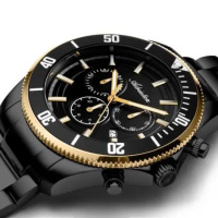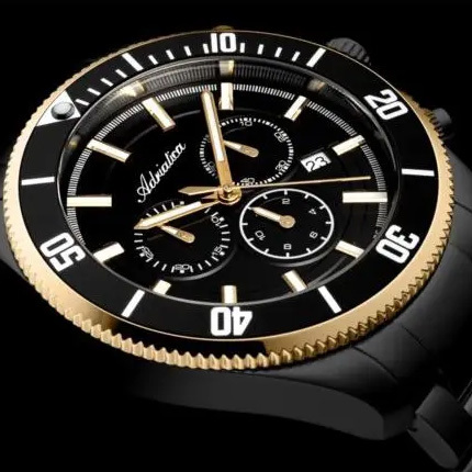 Функции: Центральные часовая и минутная стрелки, секундная стрелка вынесена на отдельный циферблат. Дата. Хронограф.
