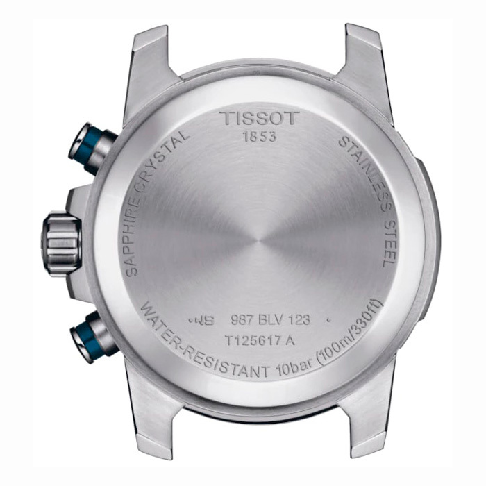 Функции: Индикация часов и минут при помощи центральных стрелок. Хронограф. Тахиметр. Окошко даты находится в положении 6 часов.