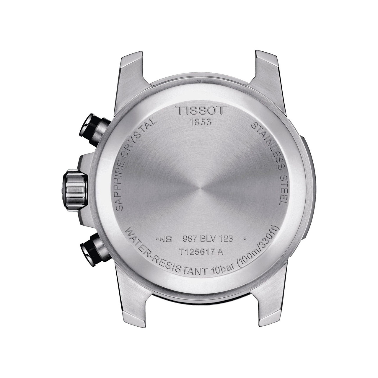 Функции: Индикация часов и минут при помощи центральных стрелок. Хронограф. Тахиметр. Окошко даты находится в положении 6 часов.