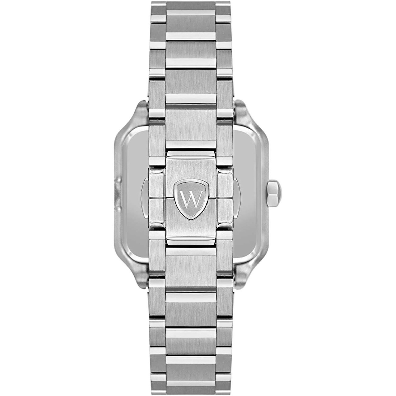 Корпус: Квадратный корпус из нержавеющей стали 316L. Циферблат синего цвета. Метки в виде штрихов и римских цифр. Секундная стрелка на конце декорирована буквой W. Сапфировое стекло устойчивое к появлению царапин. Граненая заводная головка с защитой украшена фирменным логотипом. Размер корпуса 32х32 мм, . Водонепроницаемость 30 метров.