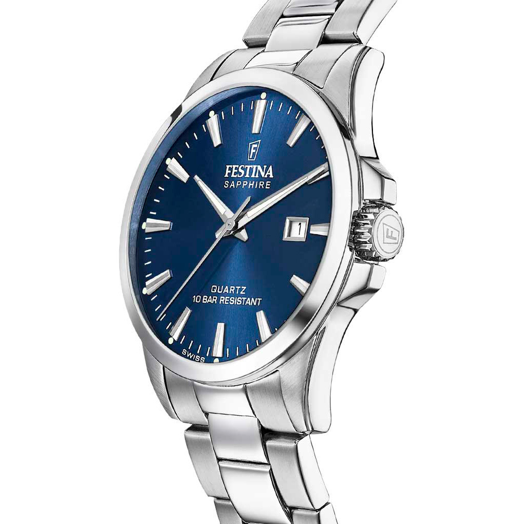 Ремешок: Надежный, прочный и элегантный браслет из нержавеющей стали. Застежка украшена фирменным логотипом Festina, с системой блокировки.
