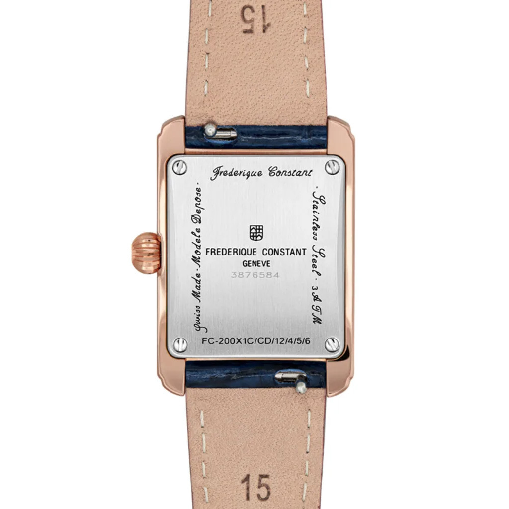 Корпус: Нержавеющая сталь с PVD-покрытием из розового золота. Сапфировое стекло. Элегантный, но четкий циферблат с гильошированным центром защищен сапфировым стеклом, которое максимально устойчиво к царапинам. Элегантность модели усиливают 35 бриллиантов (0,06 карата) на циферблате. Водозащита 30 метров. Размер 23×21 мм.