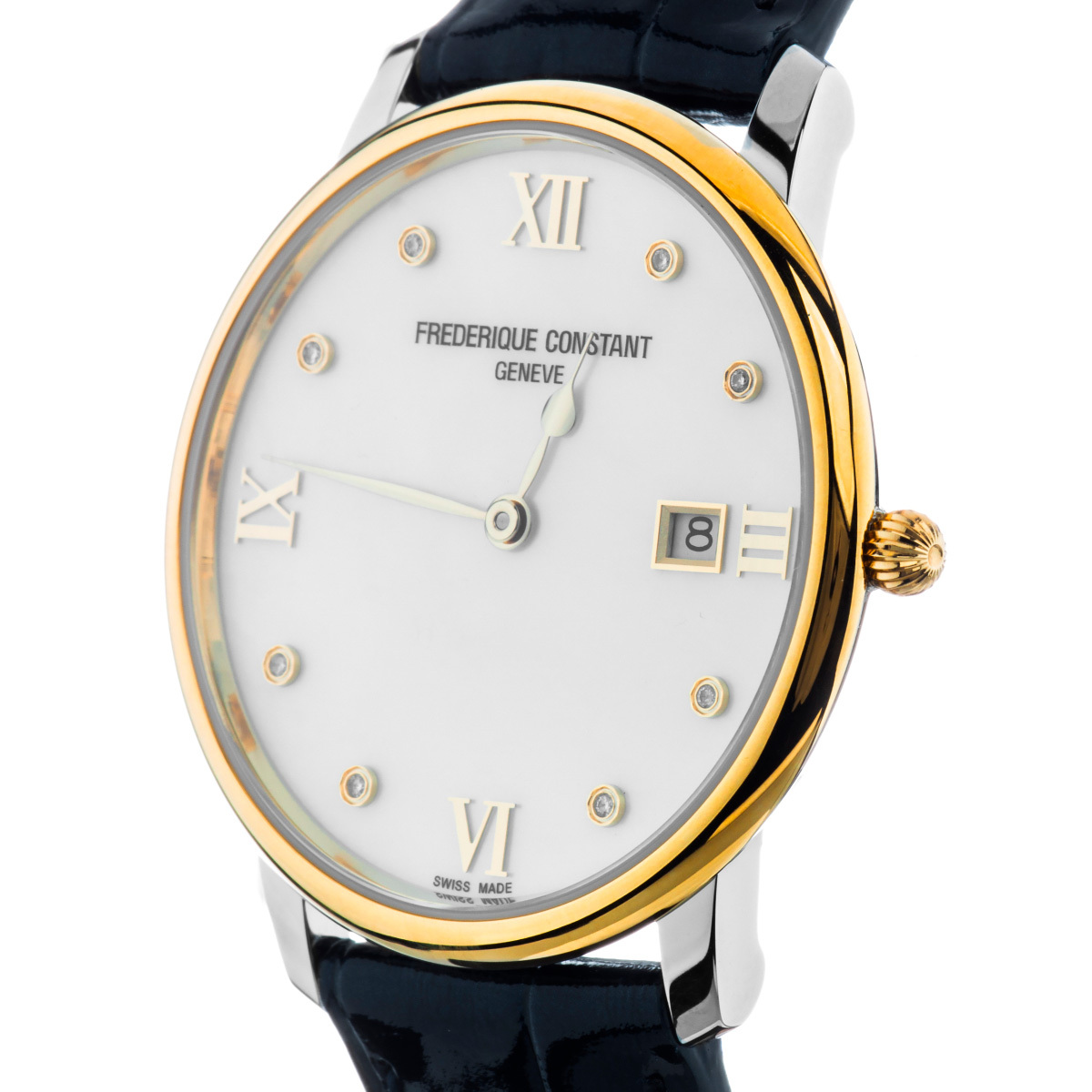 Корпус: Корпус нержавеющая сталь, безель - PVD-покрытие розового цвета. Циферблат белый перламутровый украшен бриллиантами, золотистые стрелки. Сапфировое стекло. Диаметр 36 мм. Водонепроницаемость 30 метров.
