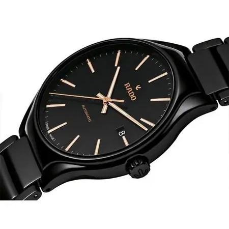 Корпус: Высокотехнологичная керамика чёрного цвета. Чёрный циферблат с позолоченными стрелками и часовыми индексами. Сапфировое стекло с антибликовым покрытием. Диаметр: 40 мм, водонепроницаемость: 50 м.
