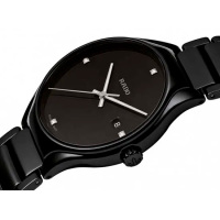 Корпус: Круглый керамический корпус c гладкой поверхностью чёрного цвета. Матовый чёрный циферблат украшен накладными метками с бриллиантами. Узкие заостренные прямоугольные стрелки в стиле Baton с люминесцентным покрытием по технологии SuperLumiNova®. Сапфировое стекло с антибликовым покрытием. Диаметр 40 мм. Водостойкость 50 м.