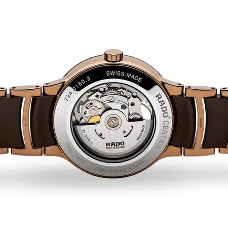Корпус: Нержавеющая сталь/вакуумное напыление. Крышка корпуса из прозрачного сапфира. Диаметр 38 мм. Водонепроницаемость 30 метров. Циферблат коричневый, скелетированный.