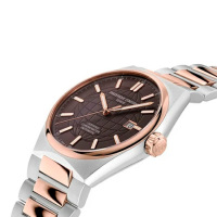Механизм: Швейцарский механизм FC-303 с автоматическим подзаводом создан имеет запас хода 38 часов, частота колебаний баланса 28 800 пк/час (4Hz), 26 рубинов в качестве камневых опор колесной системы и палет анкерного спуска. Точность хода механизма часов линейки отрегулирована в соответствии с сертификатом C.O.S.C.