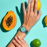 Ремешок: Браслет с литыми звеньями из нержавеющей стали, пружинная система быстрой замены ремешка/браслета, браслетная застежка тройного сложения “бабочка” раскладывается при нажатии на кнопки двойной фиксации.