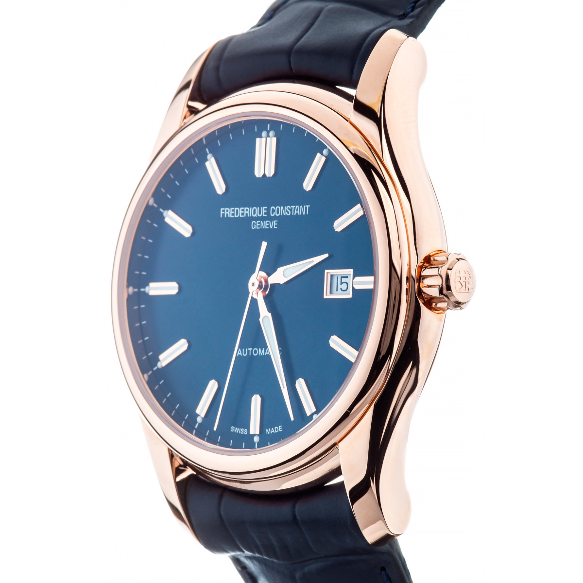 Ремешок: Ремешок тёмно-синего цвета из высококачественной кожи с тиснением под аллигатора. Ремешок вплотную прилегает к корпусу и имеет ширину 23 мм. Литая классическая застежка из нержавеющей стали и гравировкой с эмблемы часовой марки.
