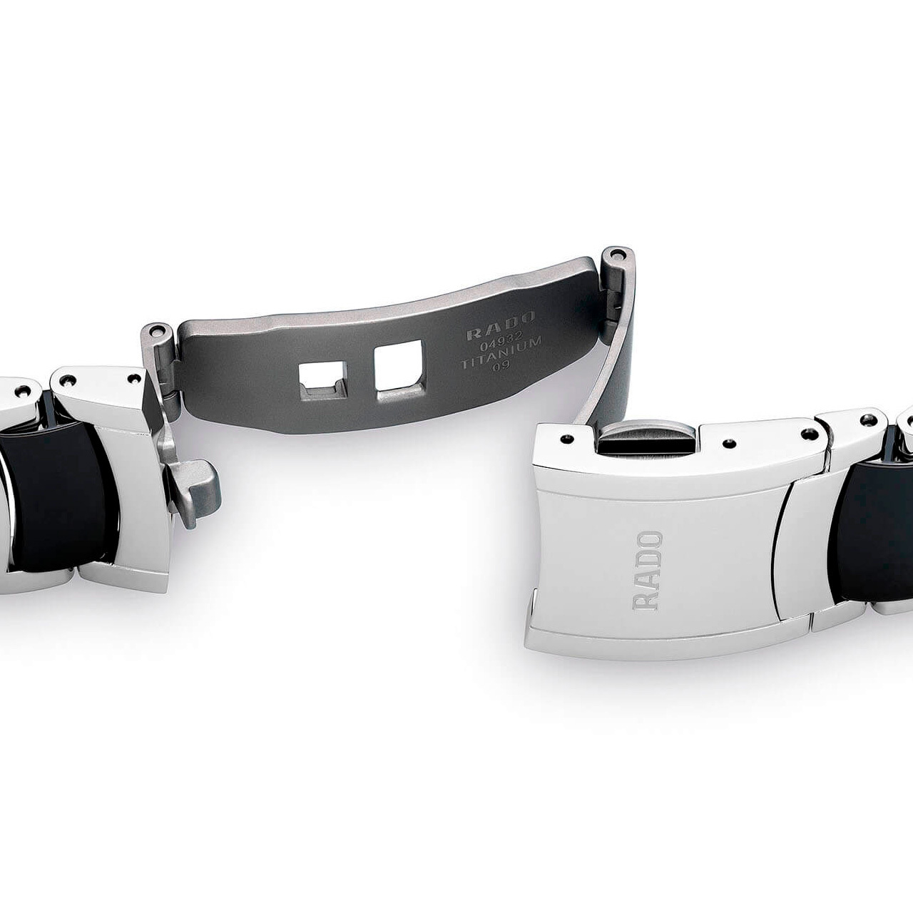 Ремешок: Браслет нержавеющая сталь 316L с PVD-покрытием и высокотехнологичная керамика чёрного цвета. Раскладывающаяся титановая застежка с системой блокировки.