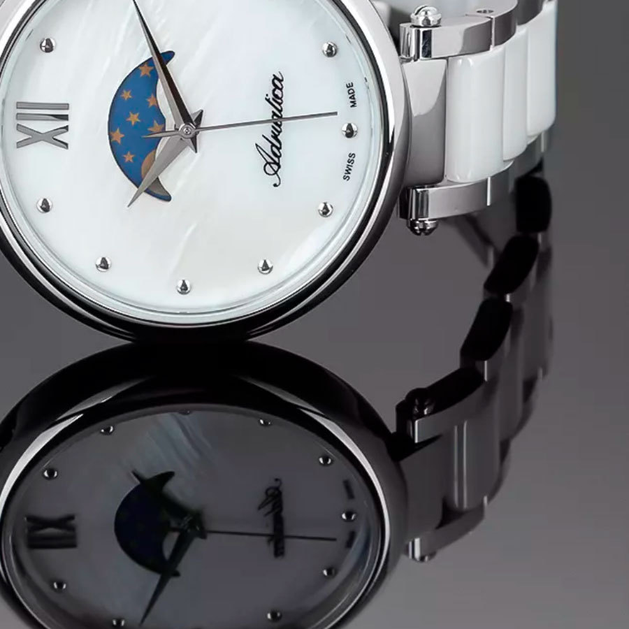 Функции: Центральные часовая, минутная и секундная стрелки. Функция отображения фазы луны.