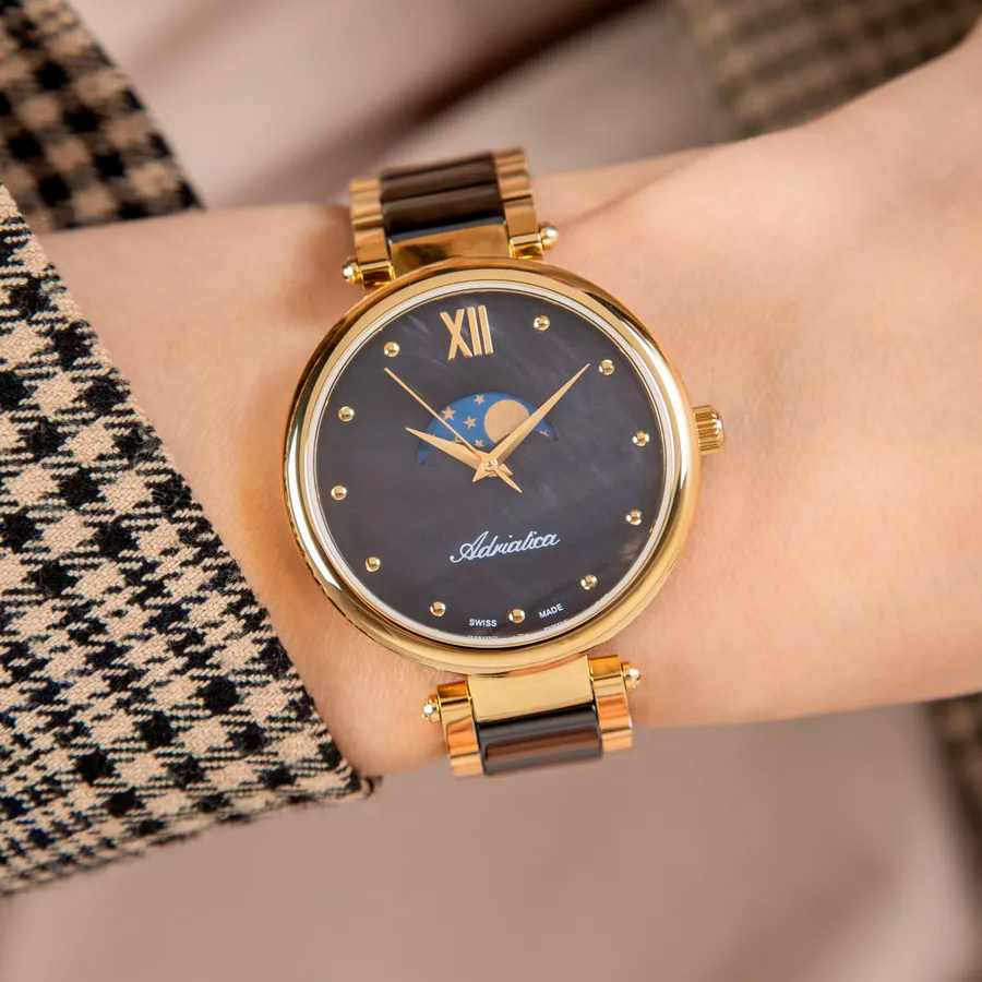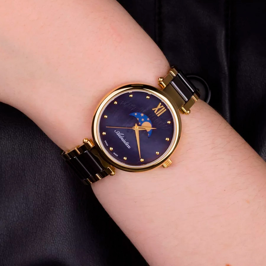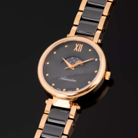 Ремешок: Браслет выполнен из нержавеющей стали с PVD покрытием желтого золота и керамическими вставками чёрного цвета.