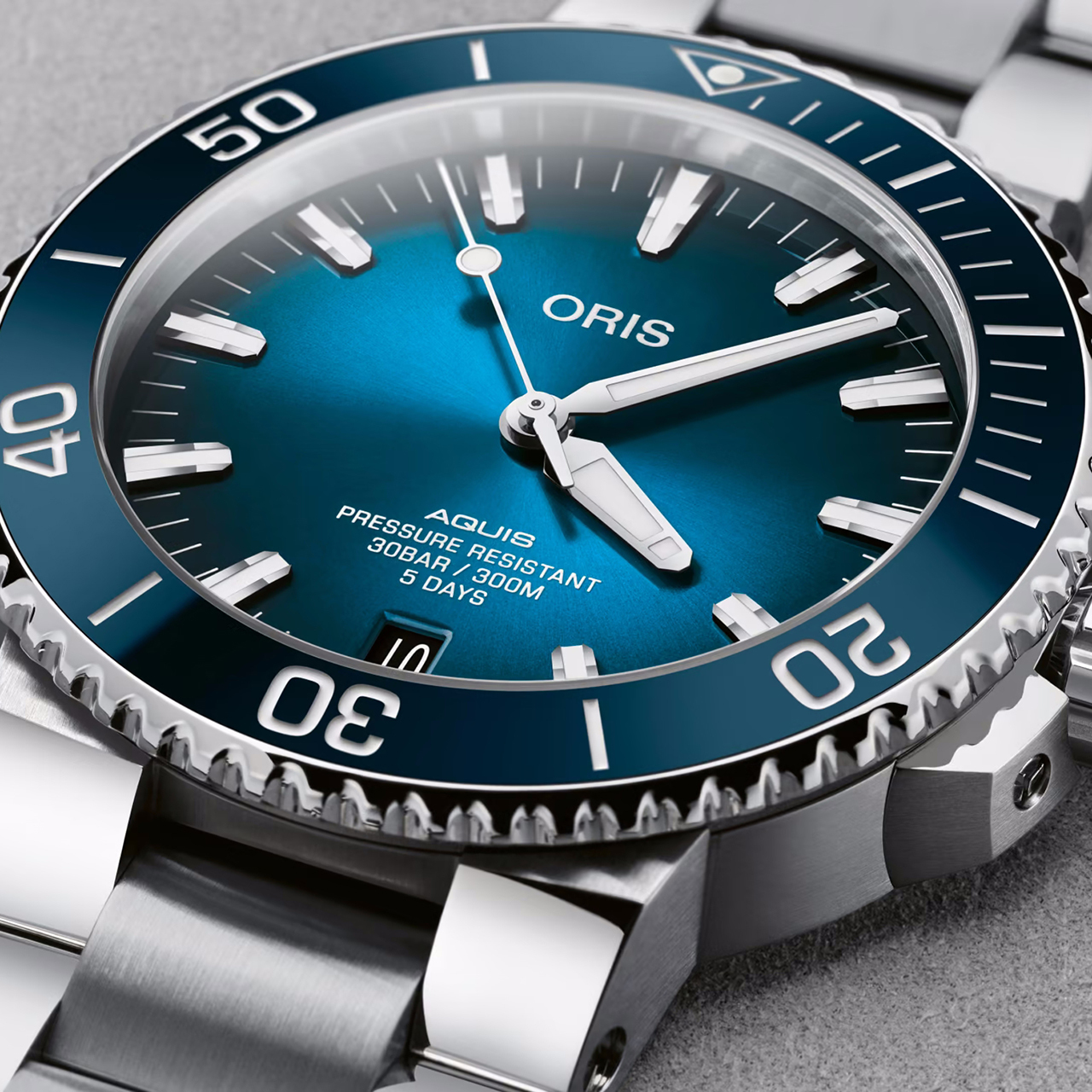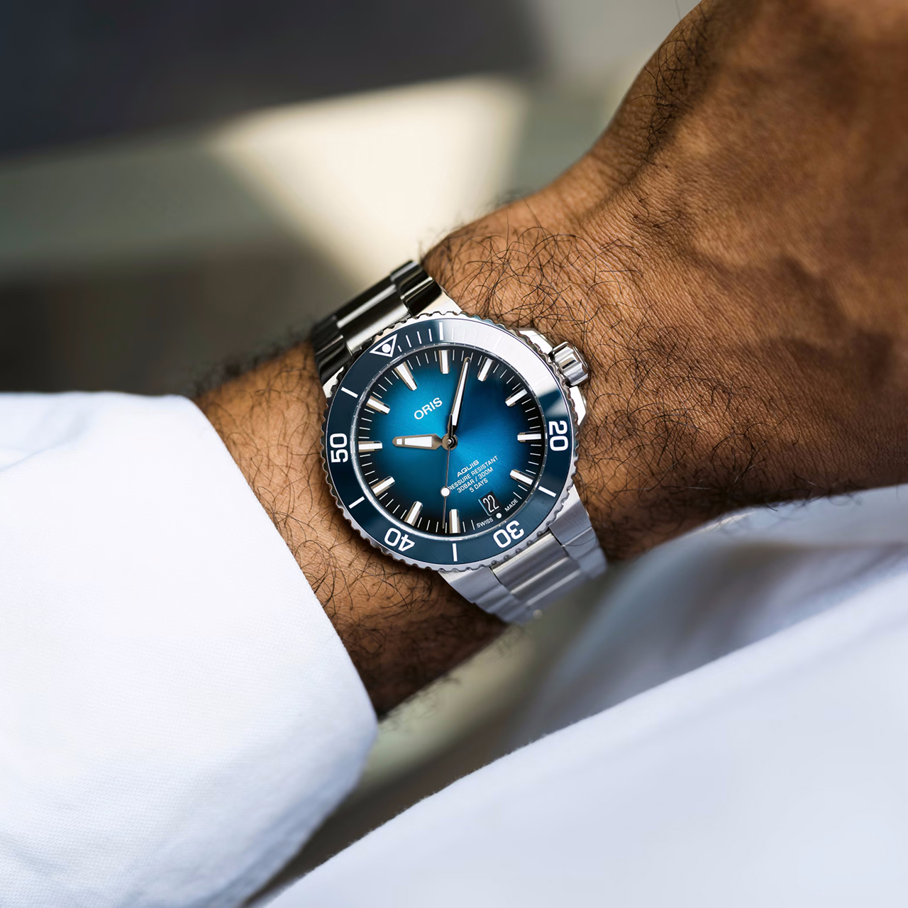 Ремешок: Браслет из нержавеющей стали с запатентованной компанией Oris раскладывающейся застёжкой.