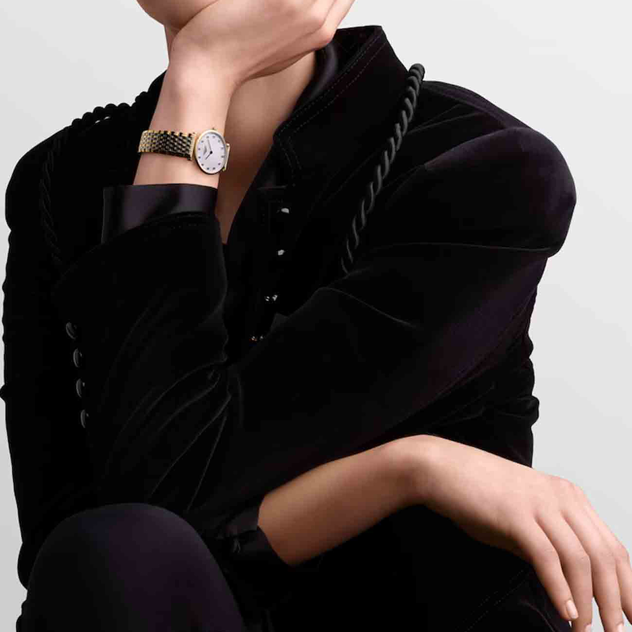 Корпус: Нержавеющая сталь + PVD-покрытие из желтого золота, сапфировое стекло, 12 бриллиантов на циферблате. Размер 29 мм, водонепроницаемость 30 метров. Циферблат – перламутровый белый.