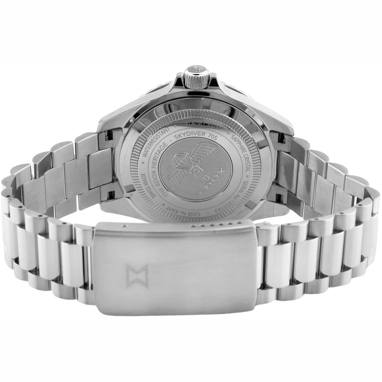 Корпус: Корпус выполнен из высококачественной стали с повышенной устойчивостью к коррозии. Однонаправленный безель вращается со щелчками только в направлении против хода стрелок, боковая грань с ребристой насечкой, фронтальная поверхность с PVD - покрытием и контрастной разметкой, на отметке “12 часов” находится капсула со светящимся в темноте фотолюминесцентным элементом. Синий матовый циферблат. Индексы и стрелки с покрытием Super-LumiNova®. Сапфировое стекло с антибликовым покрытием. Диаметр: 42 мм. Водонепроницаемость: 300 метров, завинчивающаяся заводная коронка.