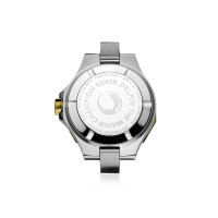 Корпус: Корпус из высококачественной нержавеющей стали с частичным PVD покрытием желтого золота. Однонаправленный безель вращается со щелчками в направлении против хода стрелок, рельефная поверхность с гравированной разметкой в виде больших цифр. Жемчужно-белый циферблат. Часовые индексы и стрелки позолоченные и украшены бриллиантами, с покрытием Super-LumiNova®. Сапфировое стекло с антибликовым покрытием. Завинчивающаяся заводная головка. Диаметр: 38 мм. Водонепроницаемость: 200 м.