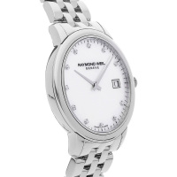 Ремешок: Модель на браслете с 5 рядами литых звеньев из высококачественной стали. Браслетная застежка, раскладывающаяся при нажатии на кнопки с двойной системой блокировки, украшена гравировкой Raymond Weil.