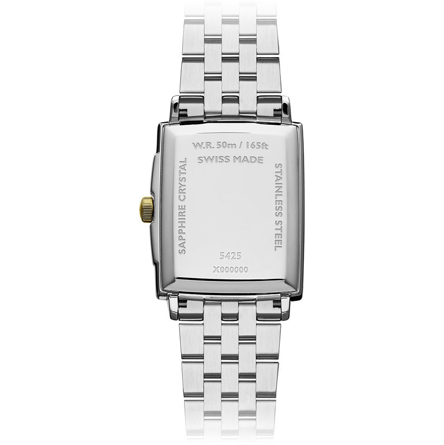 Ремешок: Браслет с литыми звеньями в пять рядов, выполненными из нержавеющей стали с PVD покрытием желтого цвета. Браслетная застежка, раскладывающаяся при нажатии на кнопки с двойной системой безопасности и гравировкой Raymond Weil.