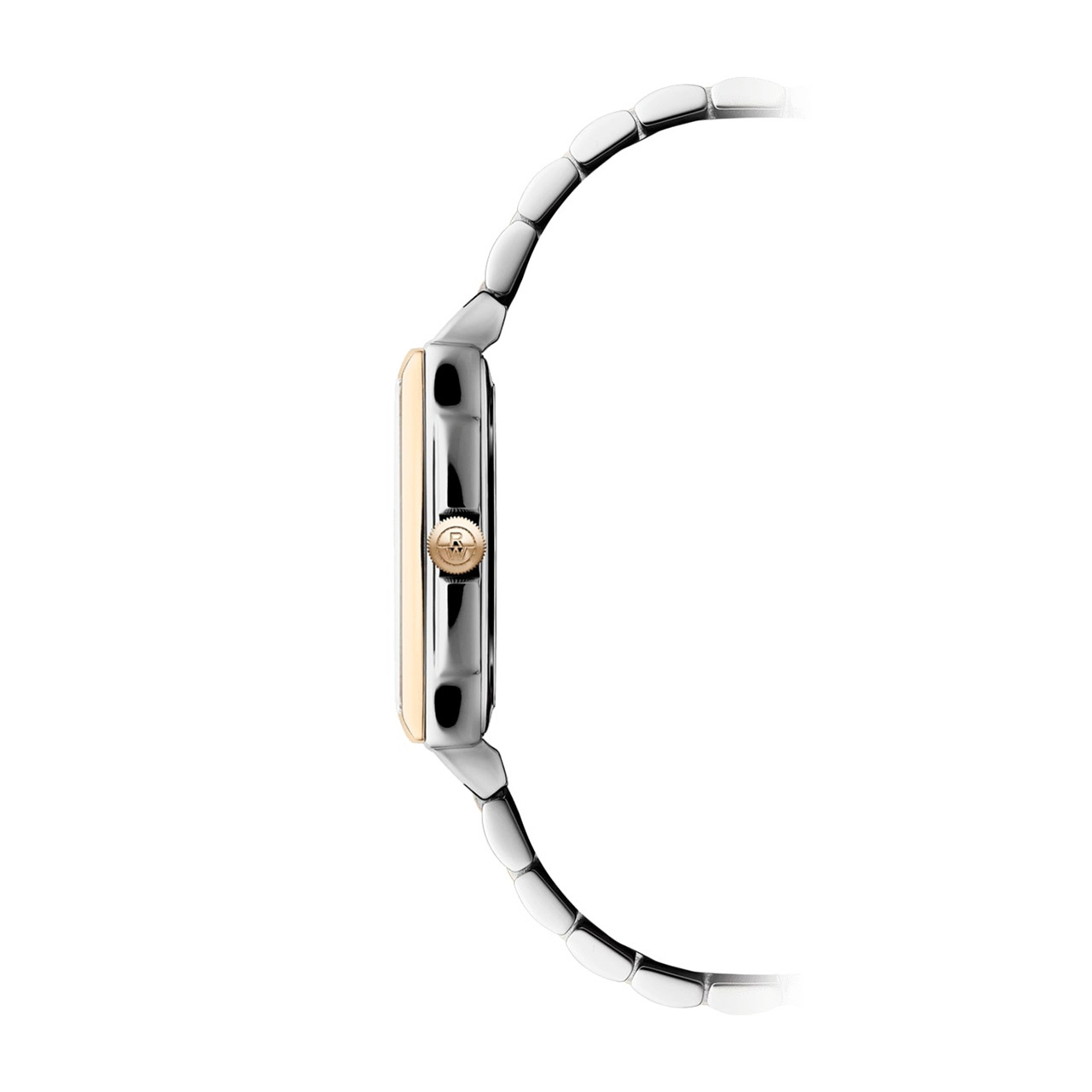 Ремешок: Браслет из высококачественной стали с 5 рядами литых звеньев, два центральных ряда с PVD покрытием цвета розового золота. Браслетная застежка, раскладывающаяся при нажатии на кнопки с двойной системой блокировки, украшена гравировкой Raymond Weil.