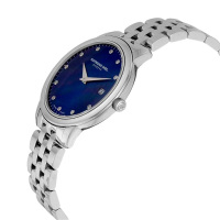 Корпус: Корпус из нержавеющей стали марки 316L. Переводная коронка украшена логотипом RW. Сапфировое стекло. Циферблат глубокого синего цвета с шлифовкой "солнечные лучи", инкрустирован 11 бриллиантами, общим весом 0,04 карата, граненые стрелки имеют покрытие цвета золота. Диаметр 29 мм, толщина 6,7 мм. Водостойкость 50 метров.