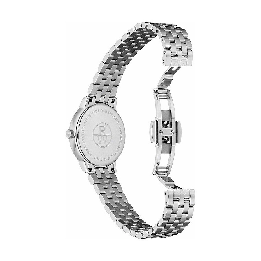 Ремешок: Браслет с 5 рядами литых звеньев из высококачественной стали. Браслетная застежка, раскладывающаяся при нажатии на кнопки с двойной системой блокировки, украшена гравировкой Raymond Weil.