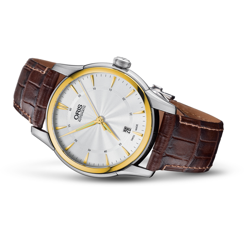 Корпус: Многокомпонентный стальной корпус с частичным PVD покрытием. Серебристый циферблат, украшенный узором "гильоше". Часовая и минутная стрелки с люминофором Super-LumiNova, золотистого цвета. Сапфировое стекло с антибликовым покрытием. Диаметр 40 мм. Водостойкость 30 м.