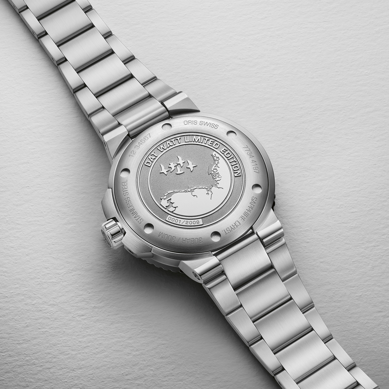 Ремешок: Браслет из нержавеющей стали с запатентованной компанией Oris раскладывающейся застёжкой. Поставляется в комплекте со сменным каучуковым ремешком.