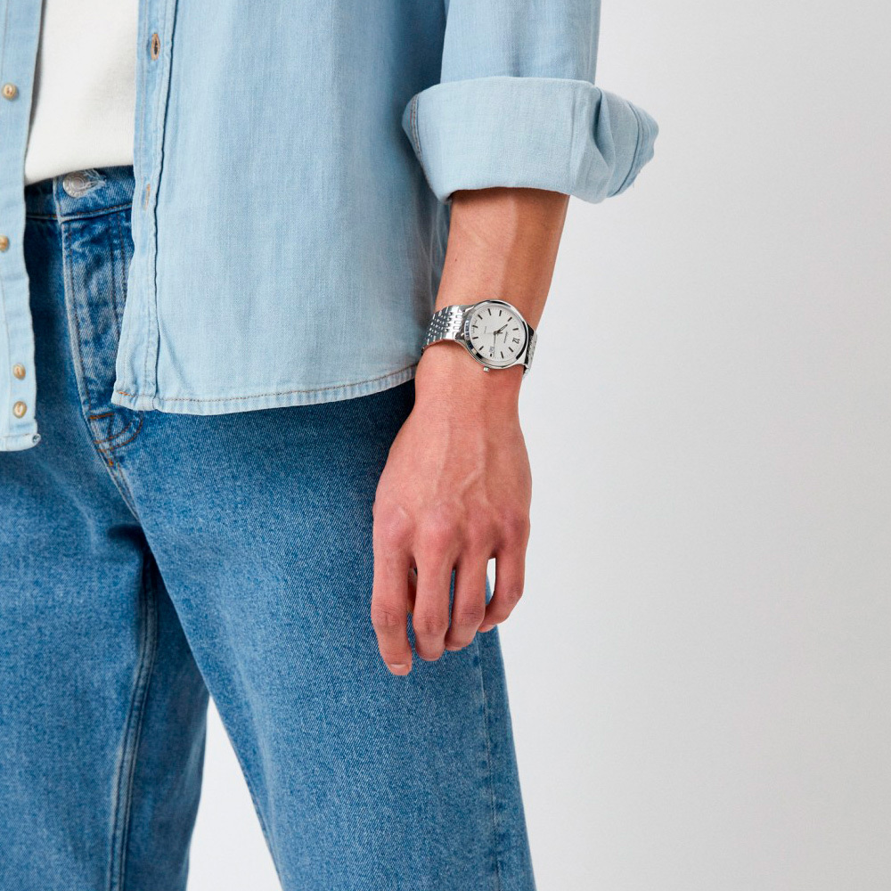 Ремешок: Браслет выполнен из нержавеющей стали. Браслетная раскладывающаяся застежка с гравировкой логотипа.