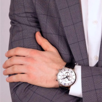 Ремешок: Кожаный ремешок чёрного цвета с классической застежкой.