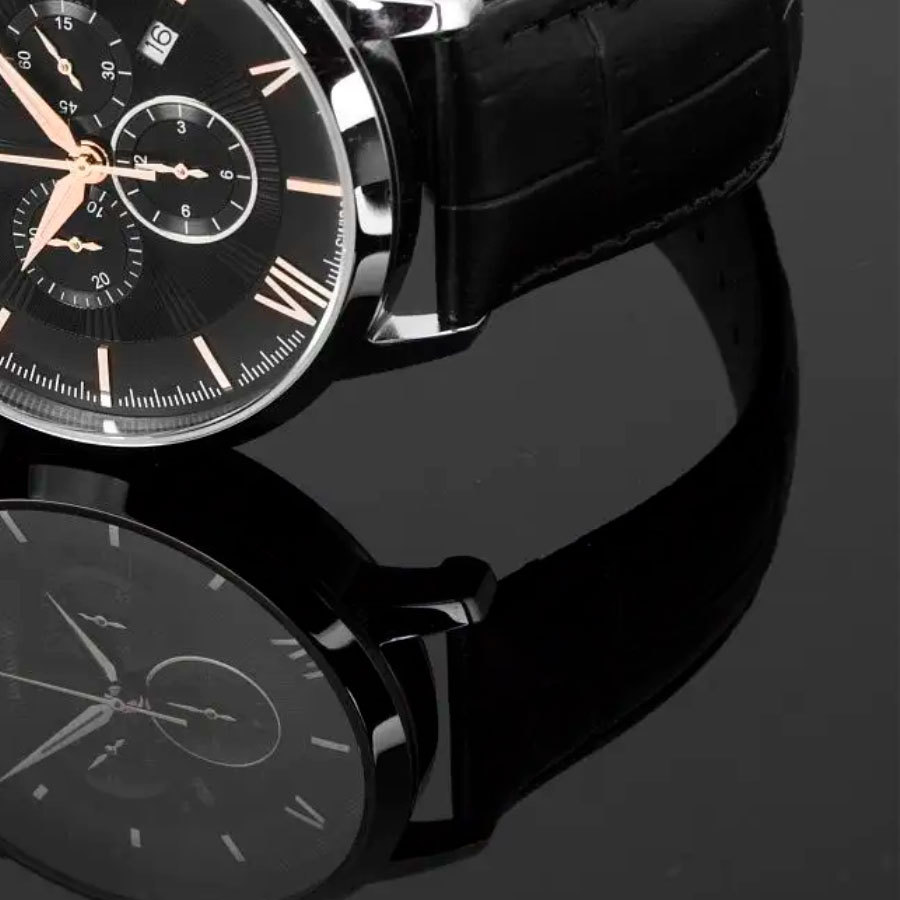 Ремешок: Черный кожаный ремешок, стандартная застежка.