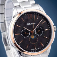 Корпус: Круглый корпус выполнен из полированной нержавеющей стали. Серебристый циферблат. Накладные часовые индексы и стрелки выполнены из стали с покрытием SuperLuminova, которое обеспечивает подсветку в темное время суток. Минеральное стекло. Диаметр корпуса составляет 42 мм, толщина 8 мм. Водостойкость WR 50 (мытье рук, дождь).