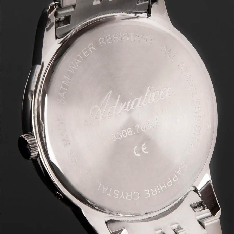 Корпус: Корпус выполнен из высококачественной стали с повышенной устойчивостью к коррозии, поверхности с матовой шлифовкой – сатинированием и полировкой до зеркального блеска. Серебристый циферблат. Накладные часовые индексыв и стрелки выполненый из стали. Стрелки с покрытием SuperLuminova, которое обеспечивает подсветку в темное время суток. Сапфировое стекло устойчивое к возникновению царапин. Диаметр корпуса составляет 42 мм, толщина 9 мм. Водостойкость WR 50 (мытье рук, дождь).