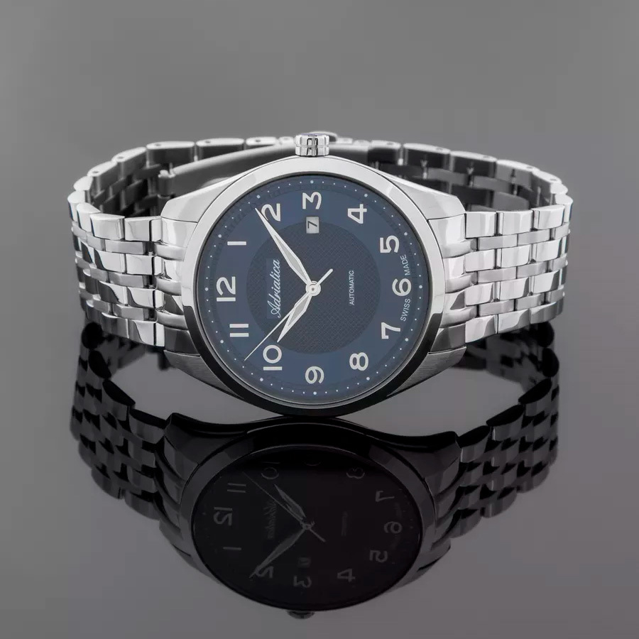 Корпус: Корпус выполнен из высококачественной стали с повышенной устойчивостью к коррозии, поверхности с матовой шлифовкой – сатинированием и полировкой до зеркального блеска. Синий циферблат с узором гильоше. Накладные часовые индексы и стрелки выполненый из стали. Сапфировое стекло устойчивое к возникновению царапин. Диаметр корпуса составляет 43 мм, толщина 10 мм. Водостойкость WR 50 (мытье рук, дождь).