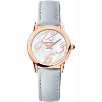 Корпус: Нержавеющая сталь с PVD - покрытием цвета розового золота. Циферблат перламутровый с позолоченными стрелкамии и часовыми индексами. Циферблат защищен высокопрочным сапфировым стеклом. Заводная головка украшена камнем в форме кабошона. Диаметр: 31 мм. Водостойкость: 50 м.