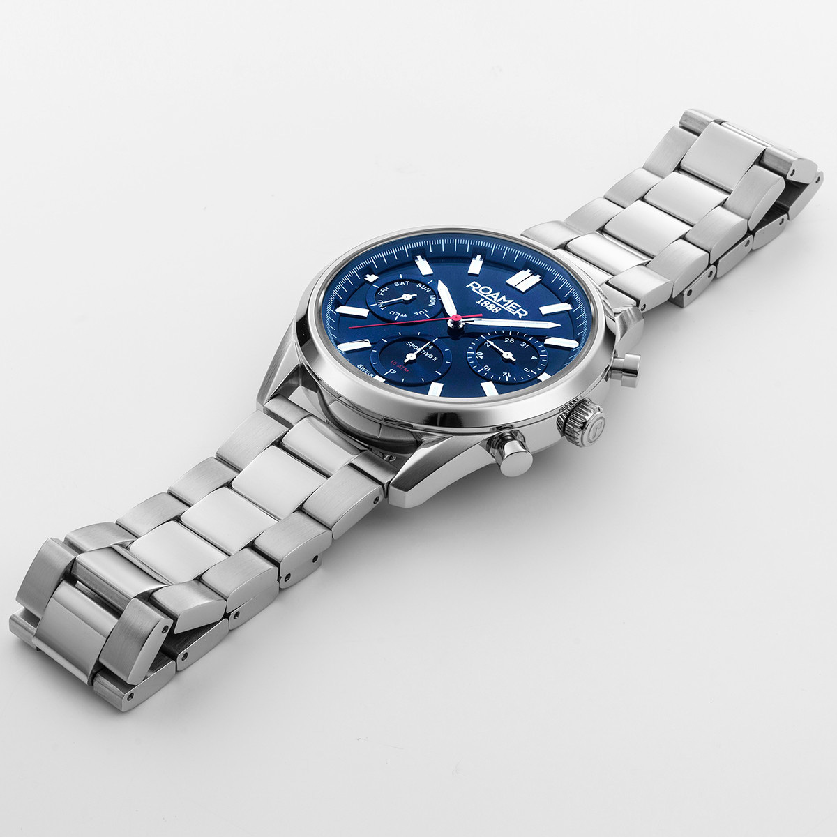 Корпус: Корпус выполнен из высококачественной нержавеющей стали 316L с полировкой и матовой шлифовкой - сатинированием. Синий циферблат, серебристые стрелки и часовые индексы с люминесцентным покрытием для оптимальной разборчивости в условиях низкой освещенности. Сапфировое стекло с антибликовым покрытием. Диаметр: 43 мм. Водозащита: 100 м.