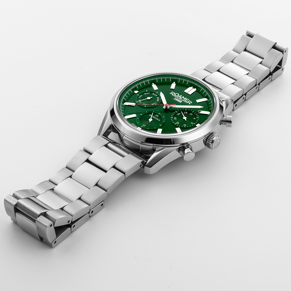 Корпус: Корпус выполнен из высококачественной нержавеющей стали 316L. Зелёный циферблат sunray. Серебристые часовые индексы и стрелки с люминесцентным покрытием для оптимальной разборчивости в условиях низкой освещенности. Устойчивое к царапинам сапфировое стекло с антибликовым покрытием. Диаметр: 43 мм. Водозащита: 100м.