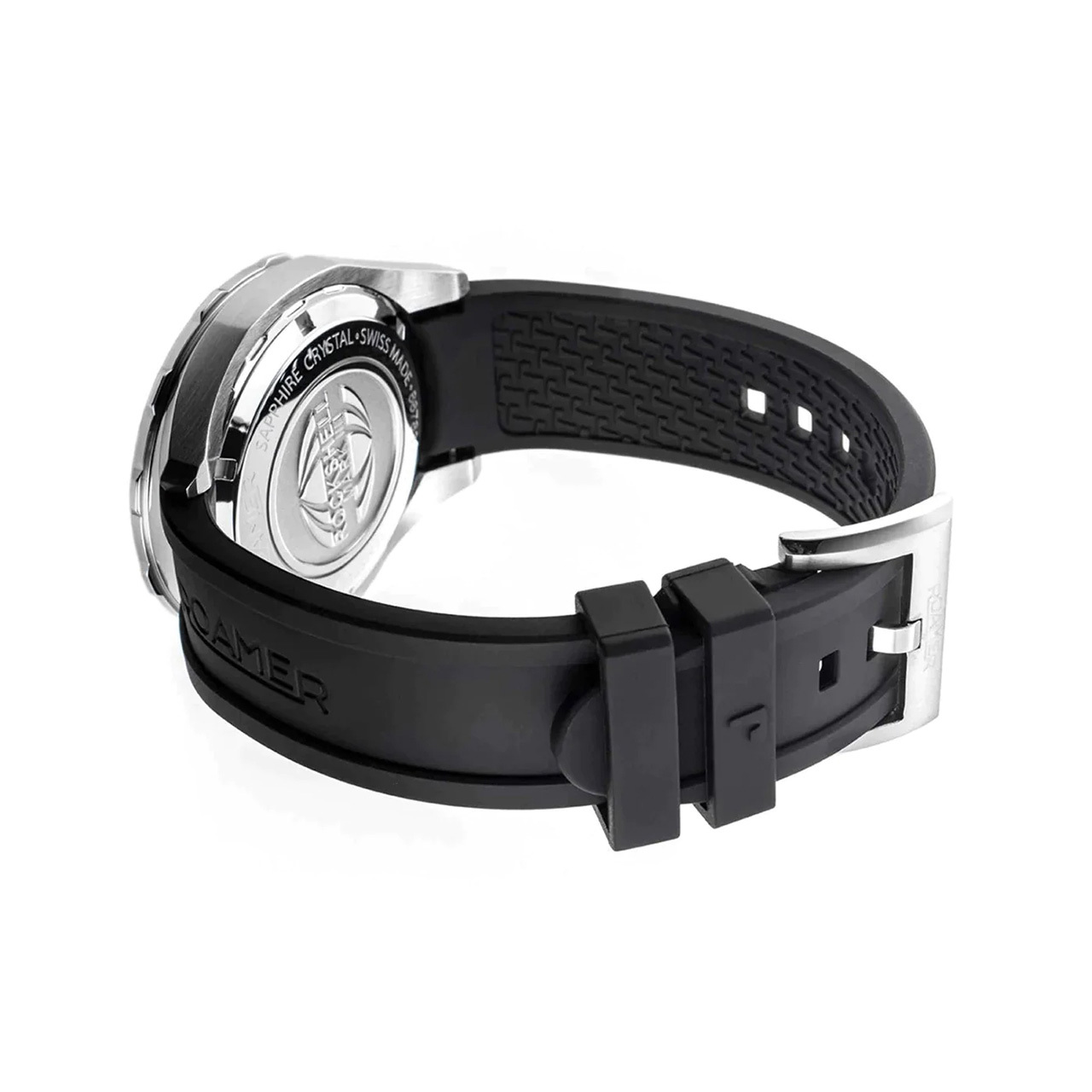 Корпус: Корпус выполнен из высококачественной нержавеющей стали 316L с полировкой и матовой шлифовкой - сатинированием. Вращающийся безель снабжен превосходной маркировкой для идеальной легкости. Благодаря треугольной светящейся метке время погружения можно точно отслеживать в считанные минуты.Чёрный циферблат, серебристые стрелки и часовые индексы с люминесцентным покрытием для оптимальной разборчивости в условиях низкой освещенности. Сапфировое стекло с антибликовым покрытием. Завинчивающаяся рифленая заводная головка. Диаметр: 44 мм. Водозащита: 200 м.