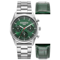 Ремешок: Браслет из нержавеющей стали с литыми звеньями, браслетная застежка с тройным сложением – «бабочка». В комплект часов входит дополнительный кожаный ремешок, который вы можете заменить с помощью удобной кнопки, без необходимости использования инструмента. Часы поставляются в специальной подарочной упаковке.